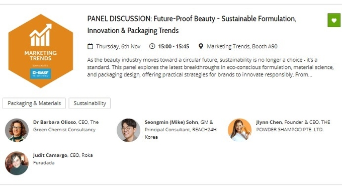 오는 11월 4~6일 태국 방콕에서 열리는 아시아 최대 화장품 원료·소재 전시회인 ‘2025 인코스메틱스 아시아(in-cosmetics ASIA)’에 초청 연자로 리이치24시코리아 손성민 대표가 참가한다.