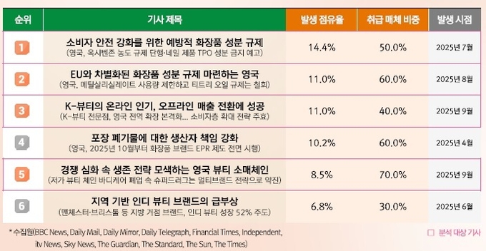 반면 2025년 8월 영국보건안전청(HSE)은 티트리오일(Tea Tree Oil)의 생식 독성 분류를 철회하며 EU와 차별화된 판단을 내렸다. 이러한 일련의 조치는 영국이 EU와 독립된 화장품 안전성 기준을 확립해 나가려는 시도로 분석된다.