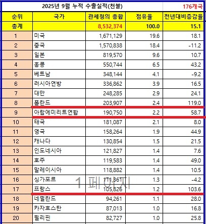 이에 따라 업계는 기민하게 수출 물량을 대거 늘리면서 대응했다. 대 미국 수출은 5월부터 중국을 추월하며 두 자릿수 증가율을 이어갔다. △ 5월 +21% △ 6월 +23.6% △ 7월 +21.2% △ 8월 -5.7% △ 9월 +33.3% 등 월별 수출액에서 보듯 9월 증가폭이 컸다.