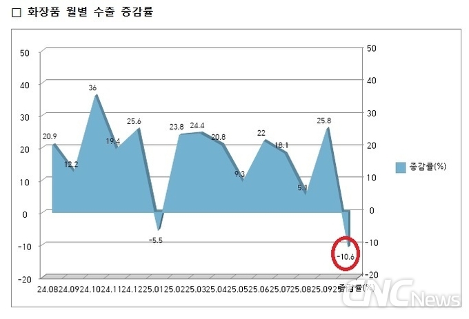 추석에 따른 조업일수 감소와 미국 관세가 높아지기 전 물량을 크게 늘려 밀어내기 한 영향 때문이라는 분석이다. 실제 미국은 4월부터 모든 수입품에 기본 10% 관세를 적용했으며, 국가별로 추가 관세를 부과하는 상호관세를 시행하기 시작했다. 8월 29일부터 역직구 소액 화장품에도 상호관세가 부과되며 타격이 우려됐다.
