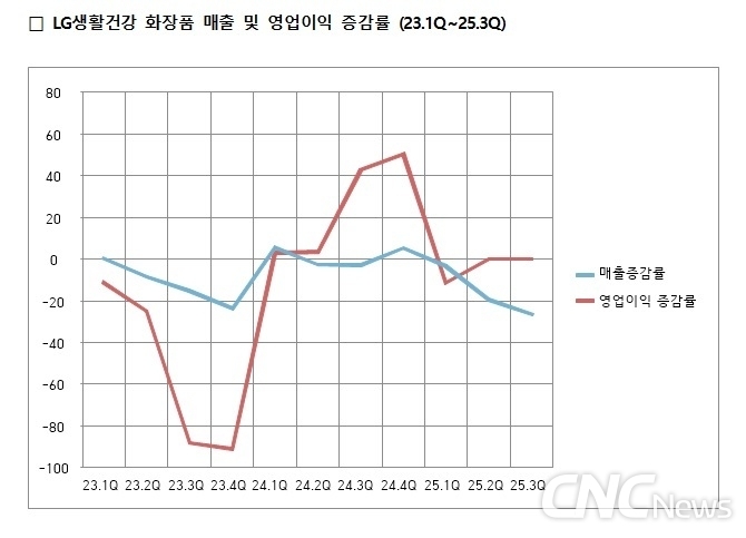 LG생활건강은 10일 2025년 3분기(이하 연결기준) 매출 1조 5,800억원, 영업이익 462억원을 기록했다고 공시했다. 내수 부진 속에서도 HDB(Home Care & Daily Beauty·생활용품)와 Refreshment(음료) 사업은 판매 호조를 보이며 성장했지만, 강도 높은 사업 효율화에 나선 Beauty(화장품) 사업은 부진했다. 이에 따라 LG생활건강의 3분기 매출은 전년 동기 대비 7.8%, 영업이익은 56.5% 각각 하락했다.