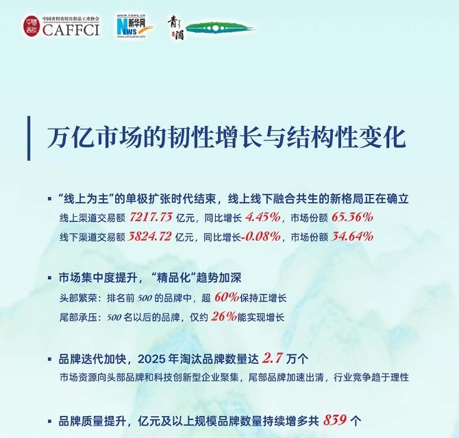 CAFFCI는 ‘2025 중국 화장품산업 데이터 컨퍼런스’에서 화장품산업이 심각한 구조적 변화를 겪고 있다며, 업계 유통채널이 통합과 공생의 단계에 접어들었다는 분석이다.