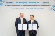 한국콜마가 글로벌 화학기업 이스트만과 손잡고 친환경 메이크업 소재 개발에 나선다. 이번 협업으로 지속가능성과 기능성을 함께 갖춘 재생 소재를 선보이며 글로벌 경쟁력을 강화할 계획이다. 한국콜마는 지난 16일 서울 서초구 소재 종합기술원에서 미국 최대 화학기업 이스트만(Eastman)과 친환경 메이크업 소재 개발을 위한 업무협약(MOU)을 체결했다고 밝혔다. 이날 협약식에는 한상근 한국콜마 기술연구원 부사장과 트래비스 스미스(Travis Smith) 이스트만 수석부사장(EVP) 등 관계자들이 참석했다. 이스트만은 첨단 소재와 기능성 첨가제 등 다양한 산업 분야를 아우르는 글로벌 대표 석유화학기업으로, 1920년 미국에서 설립됐다. 폐플라스틱을 분자 단위로 분해해 동일한 품질의 원료로 재활용하는 기술 등 지속가능 소재 분야에서 세계 최고 수준의 기술력을 갖춘 기업으로 평가받는다. 이번 협약으로 양사는 색조 화장품에 사용되는 미세플라스틱을 대체할 친환경 재생 소재를 공동 개발한다. 색조 화장품은 발림성과 밀착력, 지속력 구현을 위해 이러한 합성 소재가 사용돼왔다. 양사는 나무에서 추출되는 셀룰로오스와 자연 분해가 가능한 폴리머를 각각 차세대 천연 재생 소재로 개발