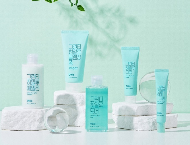 오띠(Ottie)가 환절기 시즌을 겨냥한 수분·진정케어 신제품 ‘그린티 히알루’ 라인 5종을 출시했다.