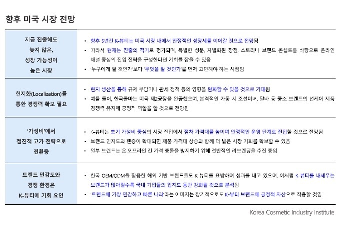 “K-뷰티는 향후 5년간 미국 시장 내에서 안정적인 성장세를 이어갈 것”이라는 전망이 나왔다.