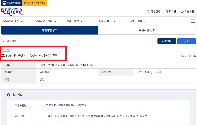 K-화장품(뷰티) 등 중소기업 소비재 수출 기업의 혁신 제품을 대상으로 ‘2025 K-수출전략품목 어워즈’가 오는 12월 중 개최된다.